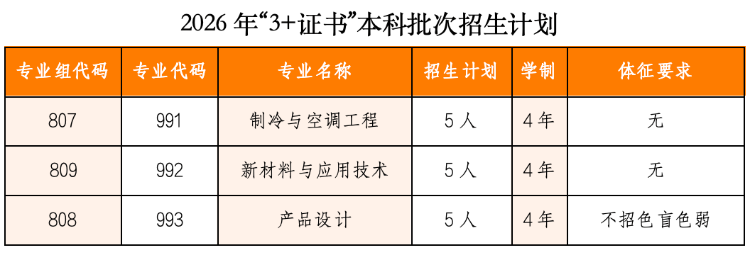 列位2026届3+证书中职考生留意了,高职高考本科新增,顺德职业手艺大学和广州职业手艺大学,学校曾经发布了《2026年春季高考招生章程》,本科批次3+证书初次招生!7所公办院校:韶关学院、嘉应学院、韩山师范学院、岭南师范学院、广东师范手艺大学、广东轻工职业手艺大学、深圳职业手艺大学;5所平易近办院校:广东工商职业手艺大学、广州科技职业手艺大学、广东白云学院、广东科技学院、广州华立学院顺职大“3+证书”测验本科批次招生登科专业为制冷取空调工程、新材料取使用手艺产物设想,共招生15人。